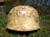 Egy barátomnak köszönhetően sikerült felfedezni ezt az SS sisakot egy régi sváb háznál a Pilisben. Érdekes 1943 körül gyártott Quist 66-os harang felületi rozsdával kívül belül de nagyon szép, két különböző álcafestéssel. Az első réteg egy kissé repedezett, vastagabb homokszín amire kívülről fehér ráfestés került. A fehér jellegéből adódóan kevésbé tartós, a tető nagy részéről már lekopott, lepergett. Az SS pajzs nyomokban még látható, bár alaposan lekapargatták gondos kezek. A bal oldalon mintha egy másik pajzs nyoma lenne látható. Érdekes duplapajzsos M40 SS sisak lehetett vagy talán Polizei amit SS sisakká alakítottak. A néni szerint gyermekkora óta megvan, az öccse és a gyerekek is hurcibálták eleget.