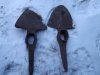 Civil felhasználású lehet. A feltett kép elég gyenge az alapján csak találgatni tudunk. Azt, hogy milyen hosszú nyél való bele nem tudom mi alapján állapítottad meg. Rövid nyéllel ez a szerszám semmire sem való, főként katonai célra nem. Valószínű, hogy egyedi kovácsoltvas szerszámok.