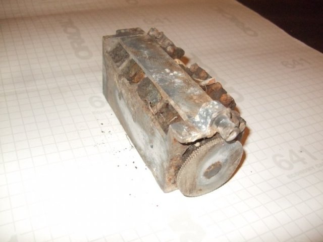 Lövészárokból került elő elég mélyről, vegyes helyen volt orosz és német leletek is előkerültek. Erről viszont nem tudom mi lehet ezért segítségeteket kérném. Forgókondenzátorra tippelek. Az oldalán van egy beütő " 192 " illetve a kis alumínium fogaskeréken is valószínűleg ez lehetett.