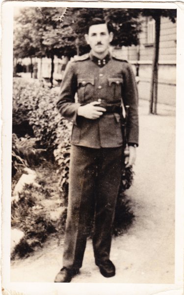 Ezen a képen a nagyapám testvére, Gyalus Mihály látható. Gyalus Mihály 1920. szeptember 20-án született Előszálláson (Fejér megye). Nem tudom pontosan mikor vonult be, de azt tudom hogy egy ideig Dunaföldváron szolgált. 1944. december 27. körül a Goldberger textilgyár területén folyó tűzharcban egy lövedék levitte az egyik lábát. Néhány nap múlva meghalt. Utoljára egy ismerőse látta élve a János kórházban, de aztán végleg nyoma veszett. A család nem tudta tisztességesen eltemetni, de édesanyja sírkövén az ő neve is szerepel, valamint az előszállási hősi halottak névtábláján is látható.