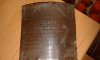 A képen látható táblát, egy vas tartály oldalán találtam. A forrasztás már nagyrészt levált, épp csak az egyik saroknál tartotta. A tartályt nem tudtam elhozni motorral, egyelőre jó helyen van, ezért csak a tábláját tudtam fényképezni.