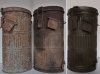 Pince takarításakor került elő a két magyar 42 M. bádog gázálarctartó doboz. A baloldalon látható henger külsejét egykor, talán a légó használat miatt mázolták világoskékre. A másik gázálarctartó tábori zöld színe a tisztítása során jött elő és a belső felületén a festés teljes épségben megmaradt. A jobboldali képen a megtisztított henger látható. Átvevői bélyegzést egyik hengerben sem találtam.