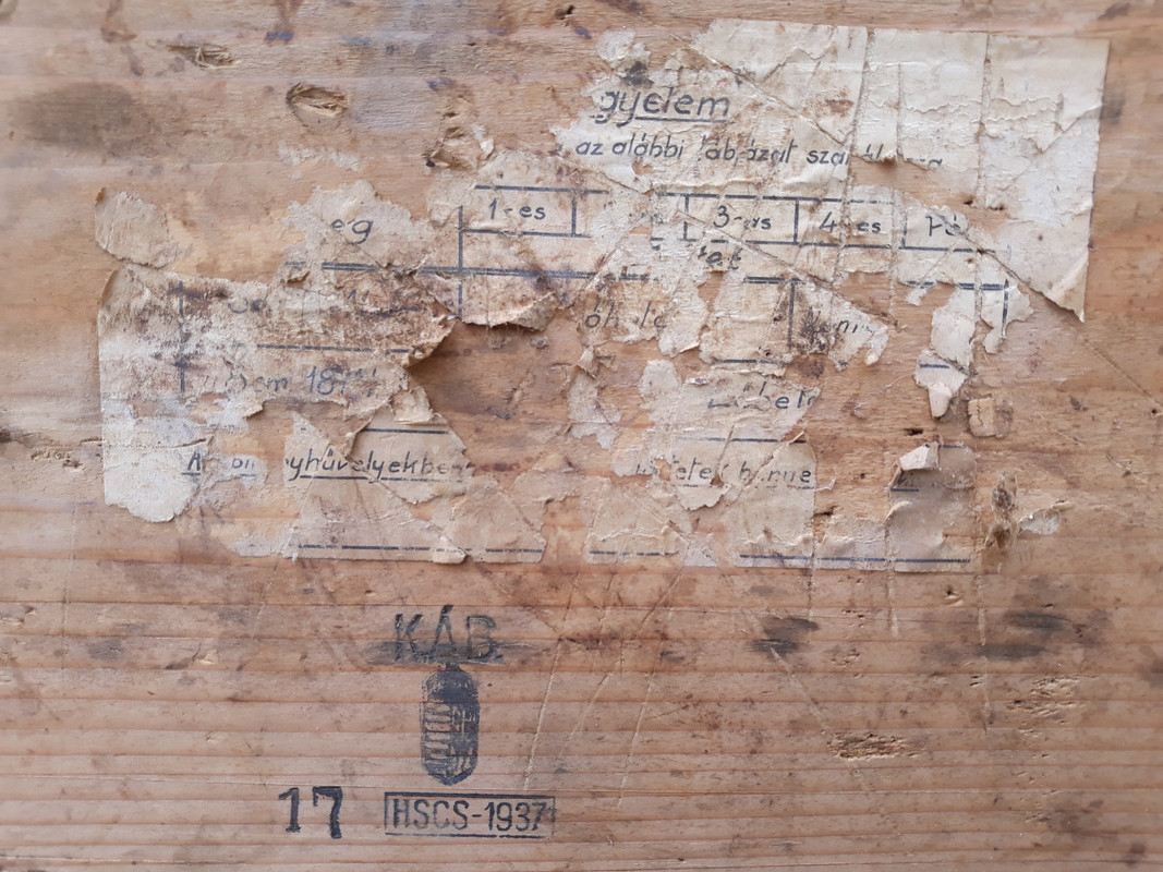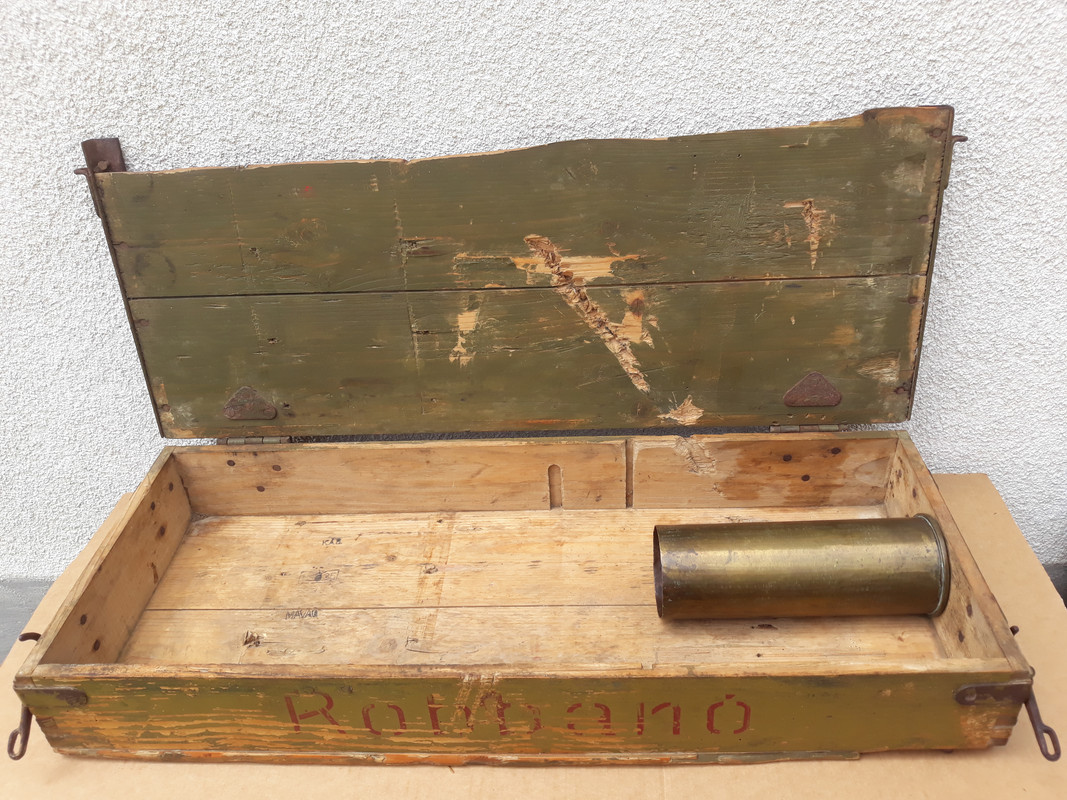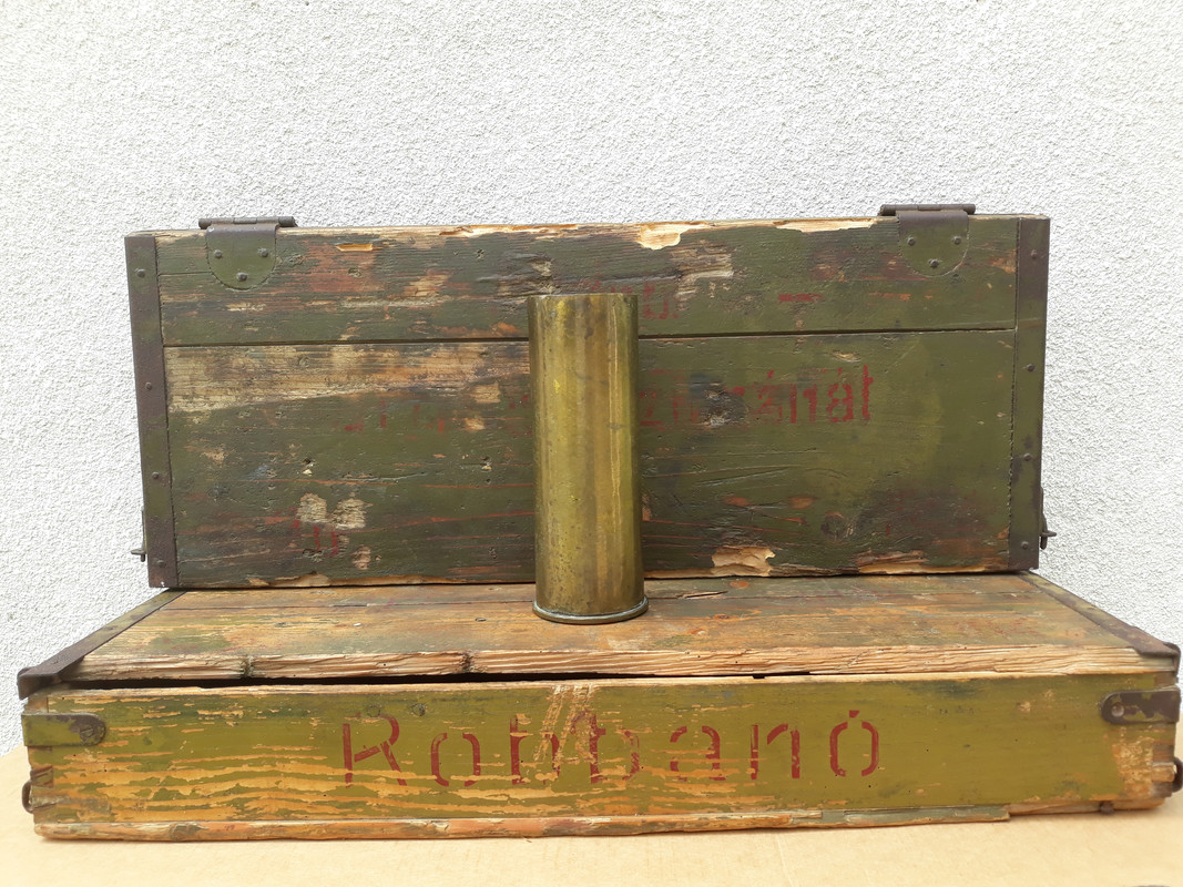 Ilyen 8 centis ládát talált nekem öcsém egy régi ház padlásán amikor kéményt épített itt az utcánkban. Meglepődtem amikor a poros ládikót lekentem lenolajjal és bezöldűlt ill előjöttek a piros feliratok. Na meg akkor is amikor hozta haza a magyar 81mm-es szinte gyári állapotú av gránátos rakaszt. Az öreg mesélte neki, hogy volt több ilyen av láda csak elkallódtak. A répákat meg elásták a kertbe