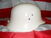 A sisak szép lett. Hogy közben elveszett a(z esetleges) értéke az más kérdés. Ha még eredeti téli álcás festés is lenne rajta, elhinnétek? (gondolom páran emlékeznek a terepszínű magyar sisak hitelessége körüli vitára) Talán még ott van alatta (ezt csak Zió Lapó tudja) ha meg lecsiszolta/glettelte, hát ez van. Így van egy nem eredeti színű, ám jó állapotú sisakja. És biztos, hogy a következőt addig nem kezdi el restaurálni, míg minimum egy korabeli szabályzatot nem szerez be róla. Fejlődés csak áldozat árán van, és mindenki meghozza a magáét. Ő már megtette.